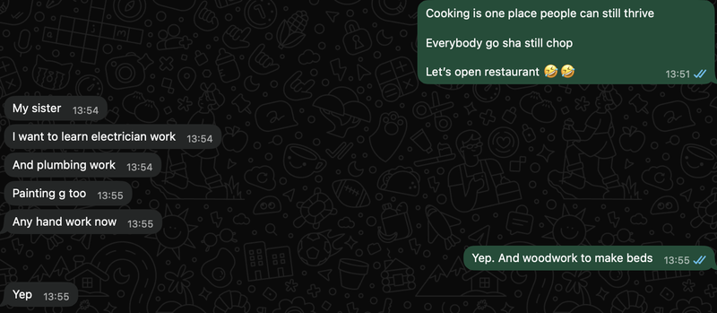 What was the world going to look like a year from now? Do I need to go learn carpentry, painting, or woodwork? How would things evolve for us humans and how would we survive? It's now an internal "joke" between me and my friends.