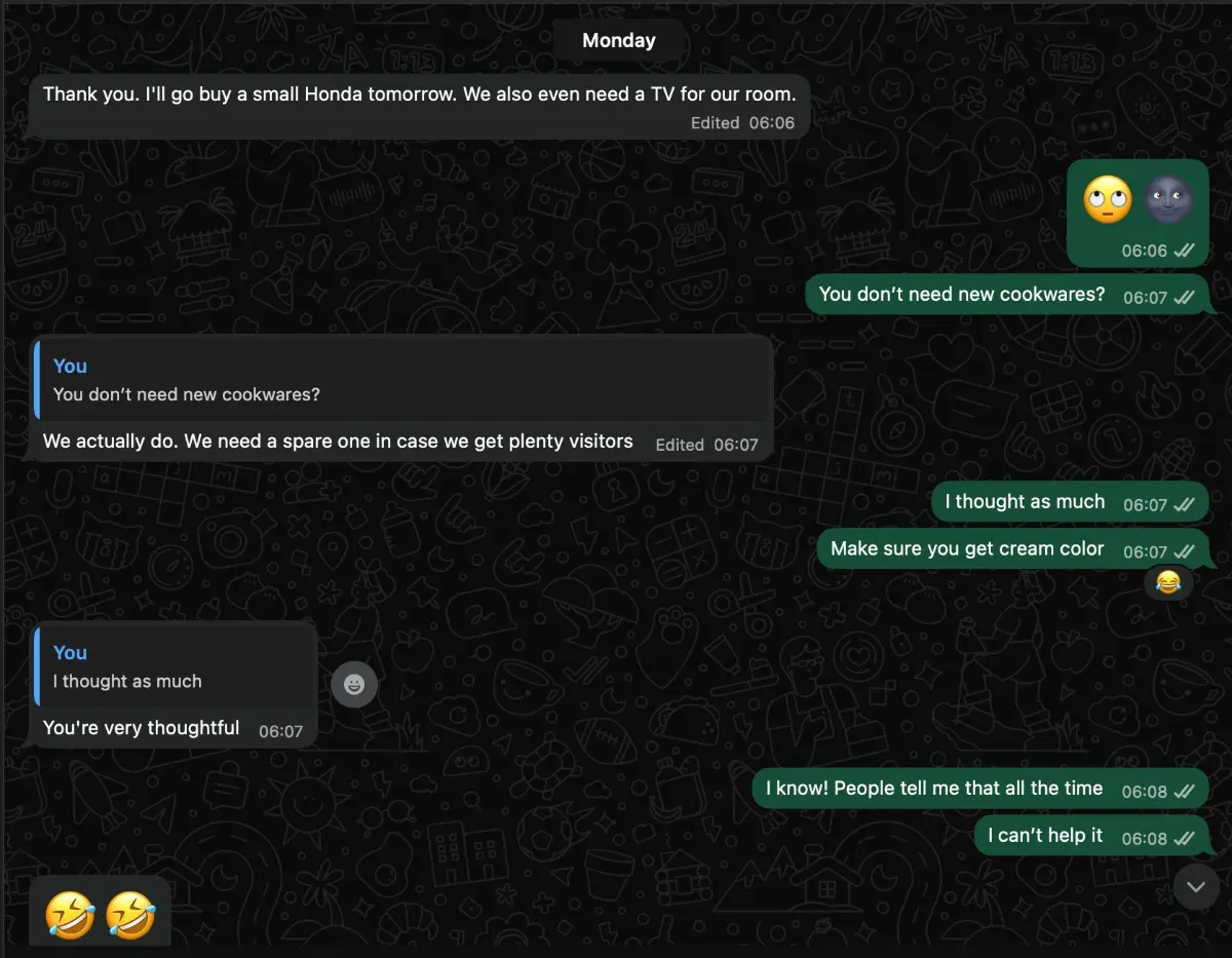A few seconds later, I received a WhatsApp message from him 👇🏾
