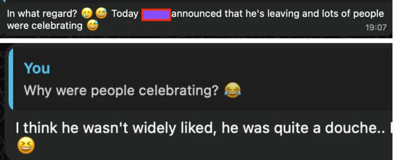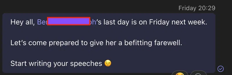 Sometime last month, an ex-colleague sent me a message about the company’s celebratory reaction to a co-worker’s announcement that they were leaving.